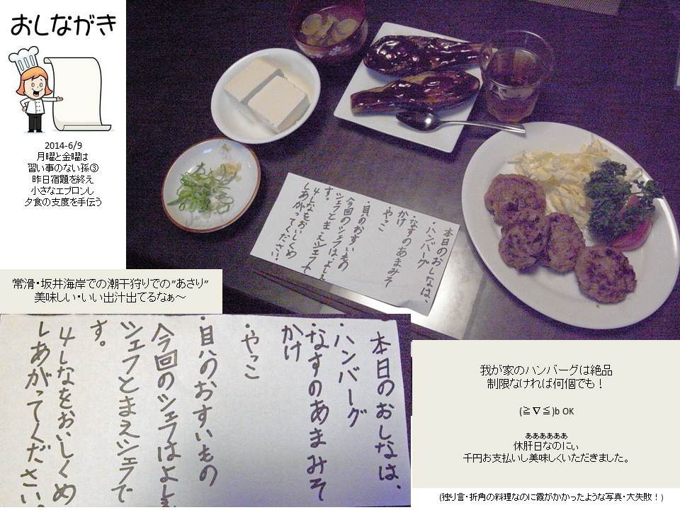 昨日宿題を終え小さなエプロンし夕食の支度を手伝う