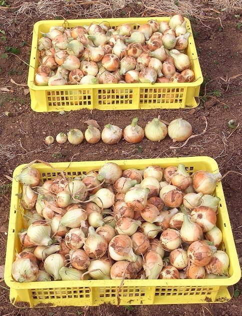 玉ねぎ(11/23作付け):ピンポン玉より少し大、過度の追肥が原因か